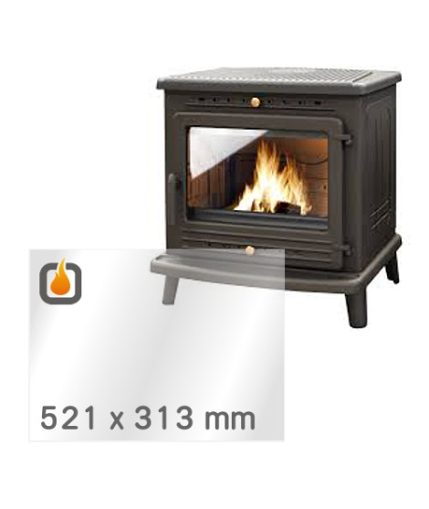 Verre vitrocéramique de rechange pour le poêle DEVILLE GALILEE, fabriqué en verre résistant à la chaleur de haute qualité (SCHOTT ROBAX®), supportant des températures allant jusqu’à 800 °C.